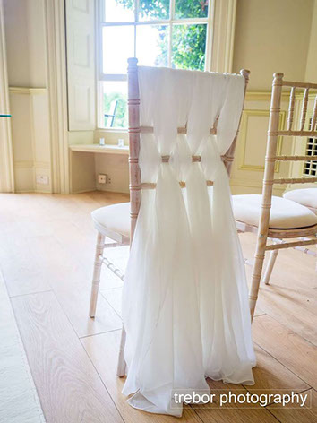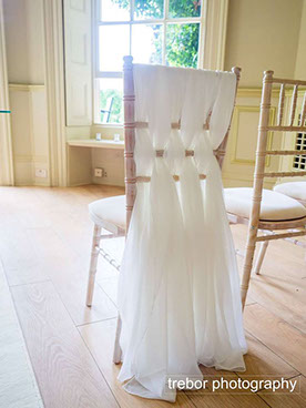 They offer a great alternative to the traditional chair cover and look even prettier decorated with sashes, brooches and flowers.